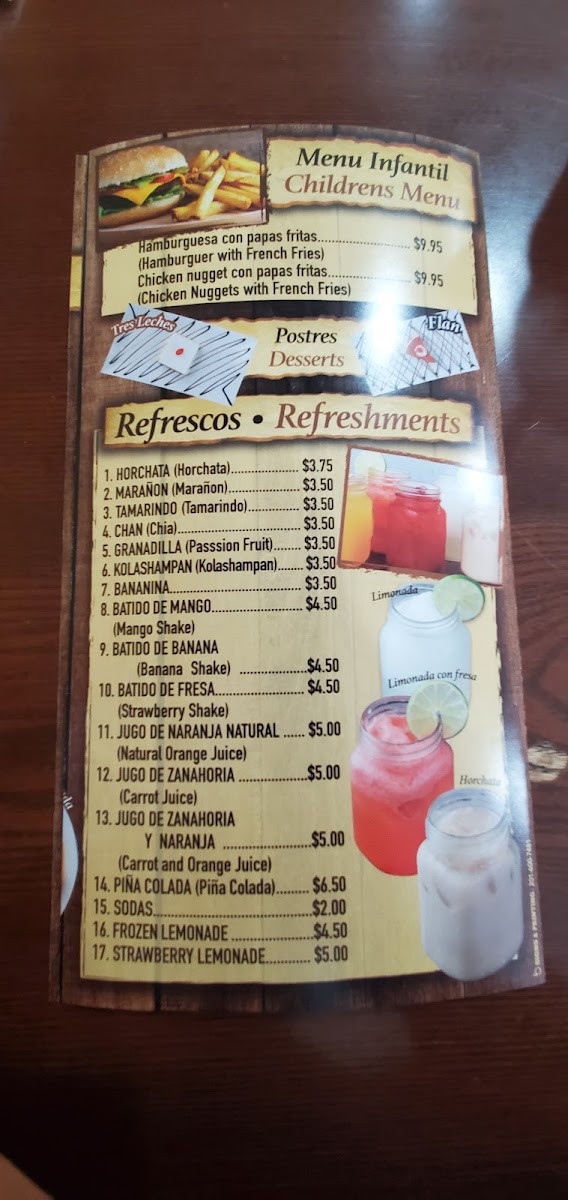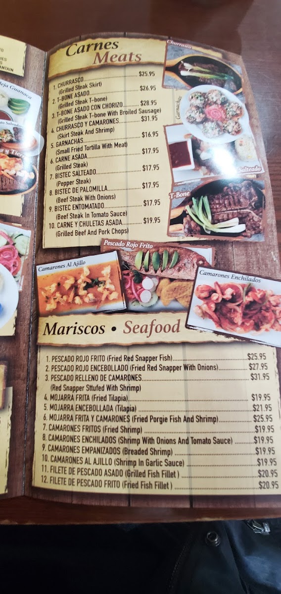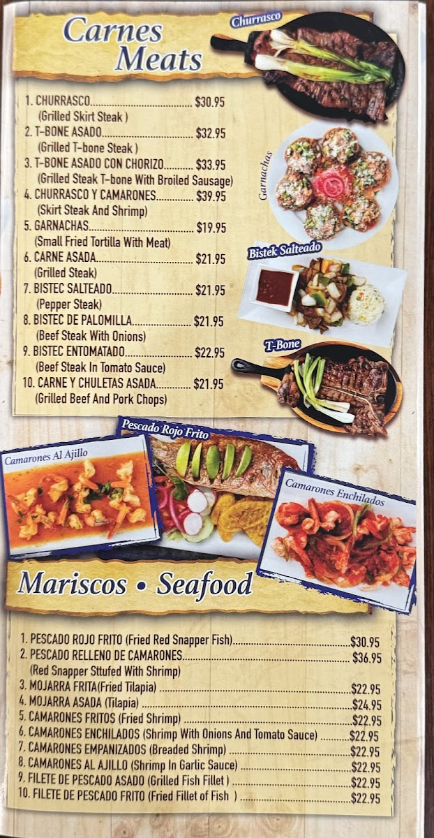 Shrimp and fish fillet served with two choices among white rice, red beans, salad, green plantain, chimol, rice & beans, tortillas, french fries, vegetables, or sweet plantain.